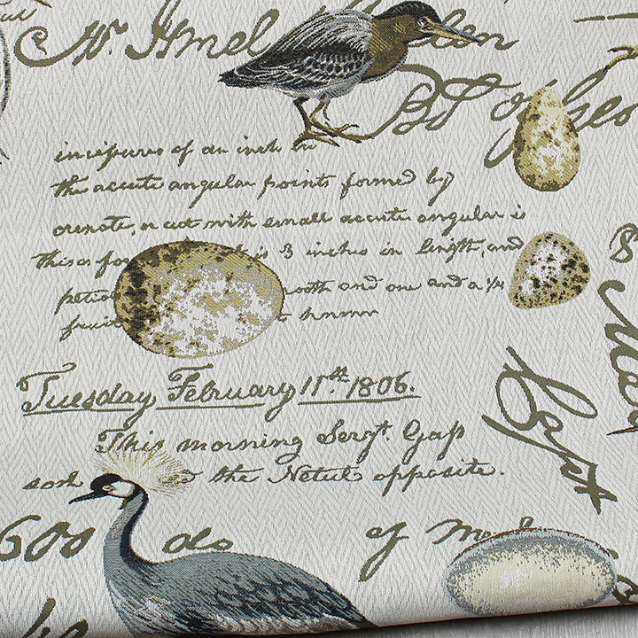 Birdsong is a woven coastal fabric that showcases a detailed heron motif layered with script-like elements for added visual interest. With its soft hand, Birdsong is well-suited for upholstery, offering both comfort and sophistication. The intricate design and texture make it a refined choice for elevating furniture in coastal or nature-inspired interiors.