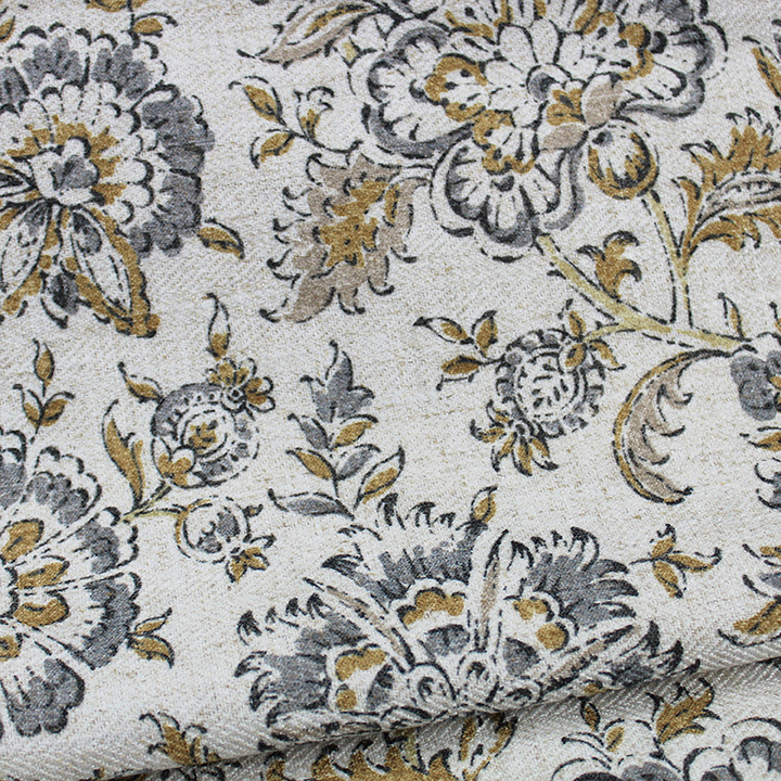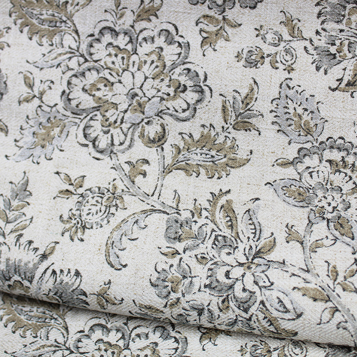 Faircrest is a sophisticated Jacobean floral vine printed on a textured supple line cloth. This pattern is a mix between modern and traditional because it has a hint of the popular block print style. This pattern is sure to elevate any room in your house.