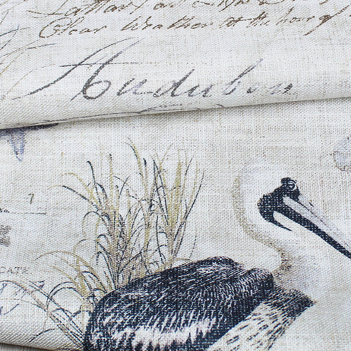 Pelican Bay is a coastal print on a linen fabric. The pattern itself has many sea birds, starfish. and vintage writing throughout.