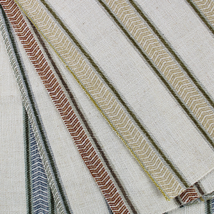 This midscale stripe features a coarse, herringbone weave and a textured novelty yarn. The combination of the simplest of features creates an element of subtle texture, and a casual yet understated elegance.