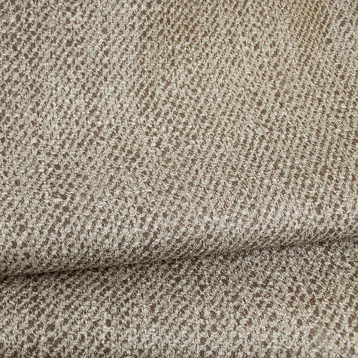 This printed textured fabric showcases a small, repeating pattern that adds understated visual interest. Its slightly raised texture provides a tactile dimension that enriches the surface detail. The fabric has a soft hand, offering a smooth and comfortable feel to the touch.
